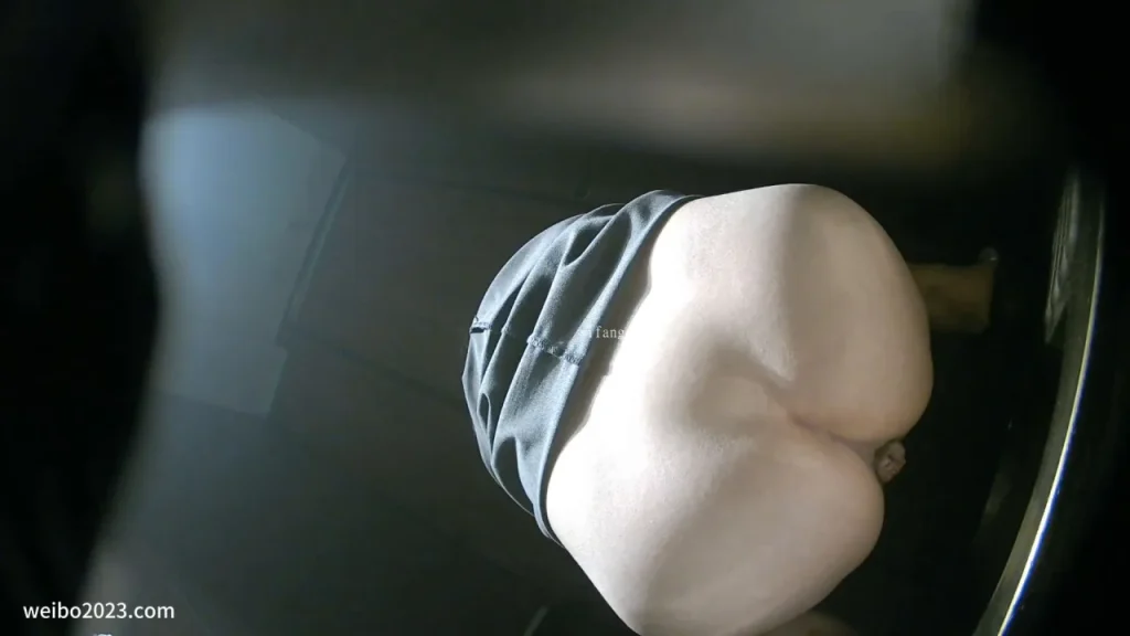 This explicit video features a young Asian woman, likely in her 20s, with short black hair and a tattoo on her shoulder. She is seen bending over in a dimly lit indoor setting, possibly a bedroom with a bed and curtains, as she experiences a painful bowel movement that results in a huge hemorrhoid. The camera captures the scene in close-up from behind, focusing on her bare buttocks as she struggles. The setting appears intimate and private, adding to the candid nature of the moment captured. The woman’s slim physique and solo presence emphasize the personal and unscripted nature of this scene.