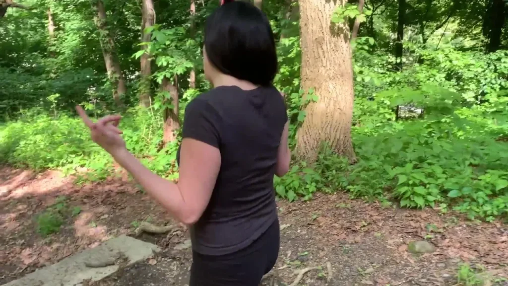 The girl’s got dark brown hair just past her shoulders, slim build, and a confident vibe — she’s out in the woods, totally nude, holding a flower like some weird nature goddess. She starts off posing casually, smiling at the camera, then turns around and starts gesturing with her back to the lens, slowly grinding her ass like she knows someone’s watching. By frame five, she’s outright taunting, bending forward, spreading her cheeks, playing up the anticipation. The video’s all outdoor natural light, shot with medium distance most of the time — over-the-shoulder angles, behind-the-back shots, none of that fake indoor studio look. She’s not doing hardcore sex on camera in the frames shown, but the build-up is slow and deliberate, like she’s leading into a doggy style scene off-screen. There’s something raw about her energy — not polished like a mainstream set, more like a model who knows how to work angles and tease without overdoing it. Her ass is tight, not huge, but shapely, and she keeps it the focus after the initial topless flower moment. Everything feels spontaneous, maybe a bit amateur, but in a good way — like real exhibitionism instead of scripted porn.
