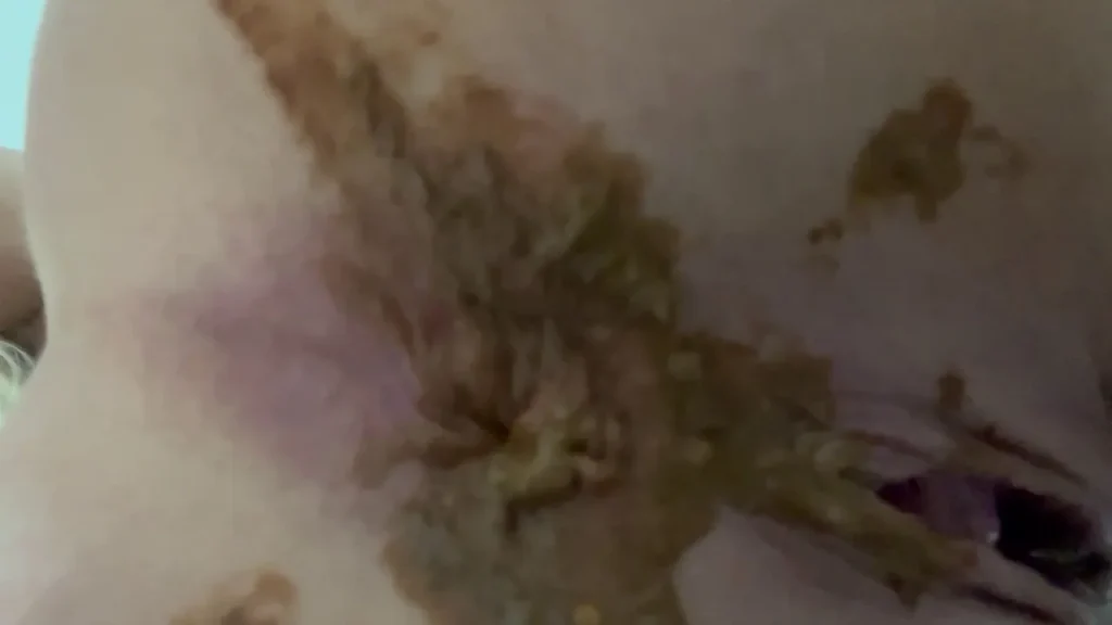 Blonde in her 20s, fit with long wavy hair and a visible marking on her butt, positions herself in the bathtub, facing away from the camera. She spreads her cheeks wide, fully exposing her ass throughout the scene. The shot stays tight behind her — bright, medium distance, with the shower head visible to the side. Most of the action is her straining slightly, then pushing out poop while keeping her ass open. The camera holds steady, no cuts — just continuous footage of her taking a shit in the tub. There’s a close-up frame of the tattoo on her lower back, but no facial shots or other angles. Everything happens in the bathroom, no dialogue or interaction, just straight scat content focused on the act and her body. The lighting is even, clinical almost, which adds to the realism. You see the mess form and drop, smeared slightly on her crack as she keeps spreading. No cleanup, no change in setup — it’s a single unedited sequence centered on her pooping on command.
